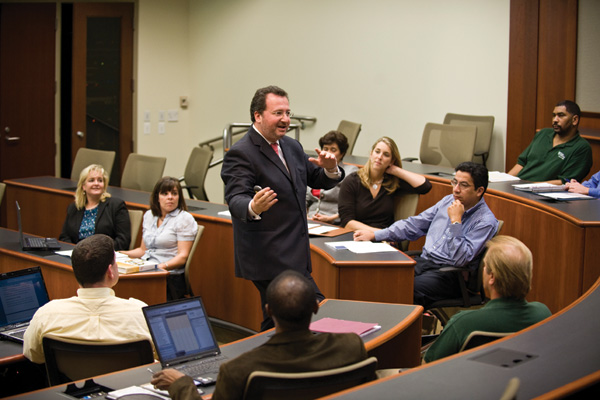 Assistant Professor of Marketing Yiorgos Bakamitsos, center, will serve as the Freeman School's new assistant dean for executive education, with responsibilities for the day-to-day operations of th school's EMBA programs.