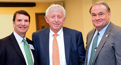 Left to right, Board of Tulane Chair Doug Hertz (A&S ’74, MBA ’76), Bill Goldring (BBA ’64) and Tulane President Mike Fitts.