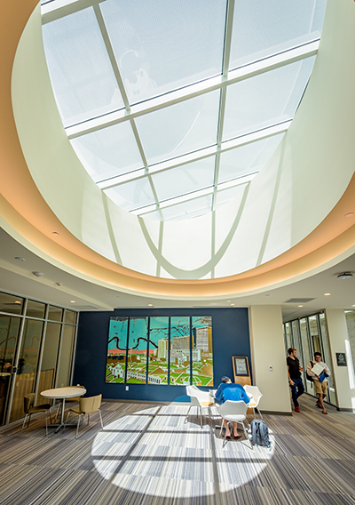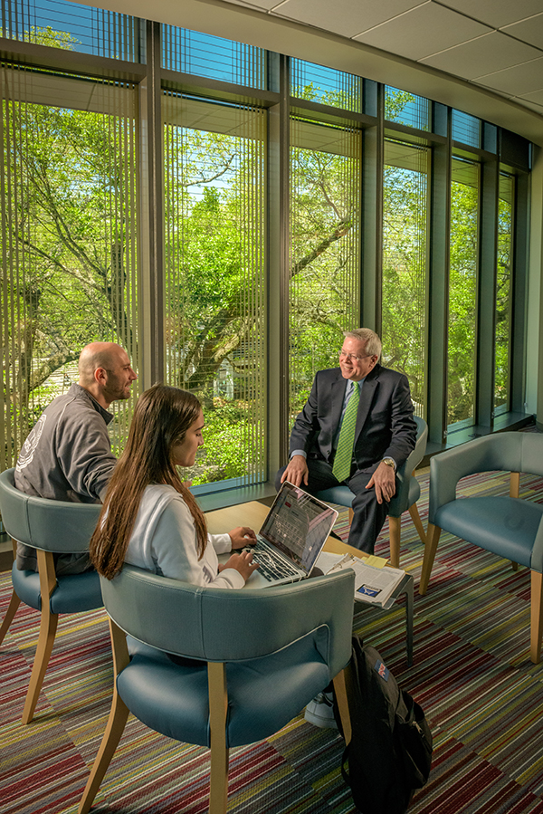 “As we were doing our strategic planning, we kept coming back to the idea of community,” explains Solomon. “We offer a high touch, highly personal experience relative to many other business schools, but our physical plant did not necessarily facilitate delivering that experience. We needed to have a physical plant that created and nurtured community, and that’s what we’ve got now.”